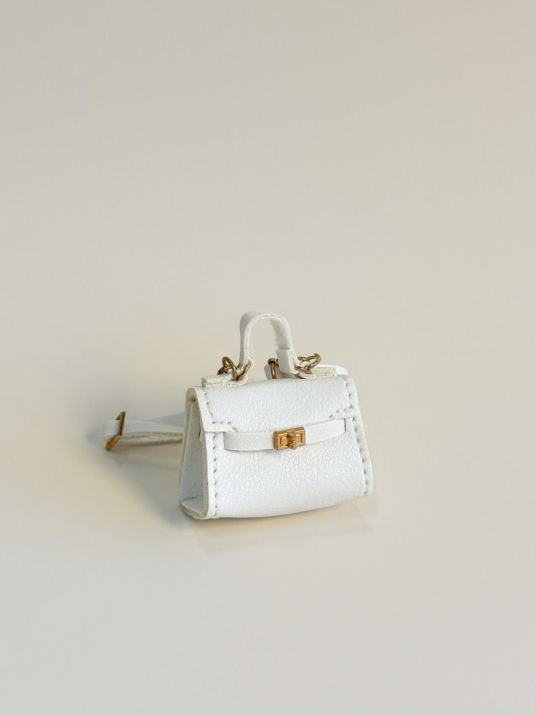 Labubu Miniature Luxury Handbag - White Leather Tote with Gold Lock