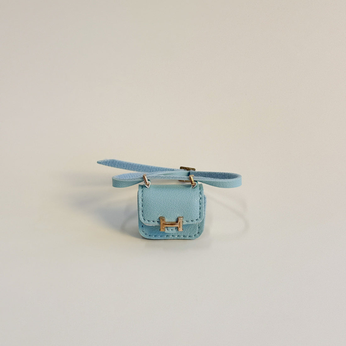 Labubu Mini Micro H Flap Crossbody - Blue with Gold Accent