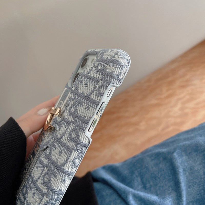 CDブラック & グレーファブリックカードバッグiPhoneケース
