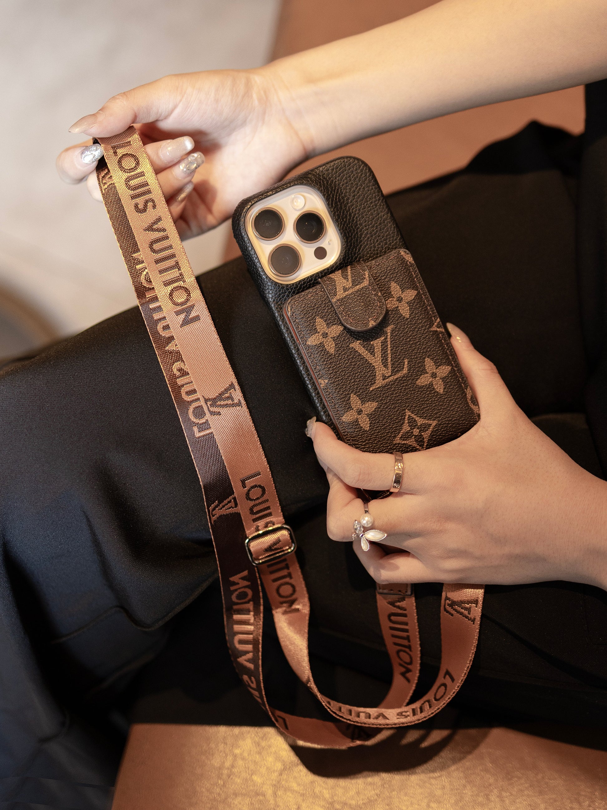 Elevate your everyday with the perfect blend of luxury and convenience. Our high-end iPhone cases offer more than just protection—they're a statement. Crafted with precision, these cases feature premium leather finishes and a secure, functional design. With integrated cardholders and a stylish strap for easy carrying, your phone stays safe, stylish, and organized. Treat yourself to the ultimate accessory that reflects your sophisticated taste. Premium Leather Material: Crafted from top-quality leather, ensuring durability and adding a touch of elegance. Fashion Design: Incorporates stylish design elements, keeping you on-trend while protecting your iPhone. Shock-Absorbent Material: Provides comprehensive protection, safeguarding your iPhone from accidental drops and impacts. Luxurious Feel: Offers a sense of luxury and sophistication, elevating your iPhone experience to new heights. Compatible with Apple iPhone models: iPhone 16 Pro Max, 16 Pro, 16, 15 Pro Max, 15 Pro, 15, 14 Pro Max, 14 Pro, 14, 13 Pro Max, 13 Pro, 13, 12 Pro Max, 12 Pro, 12