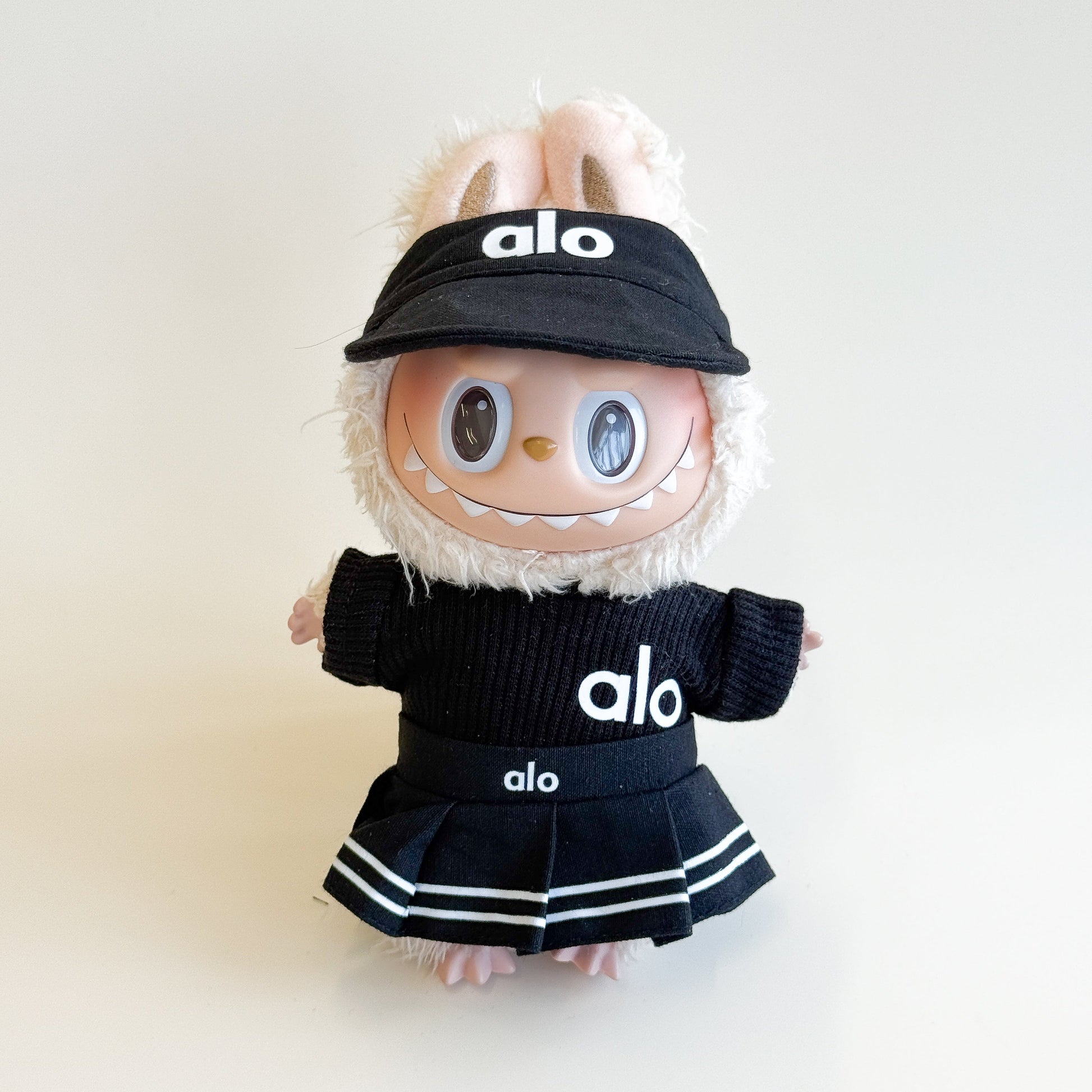 Create different looks by mixing the cap or beanie with the coordinating top and skirt. The monochrome color scheme with clean branding beautifully complements your Labubu's cream-colored fur. This Labubu fashion set brings premium athleisure aesthetics to your beloved collection.