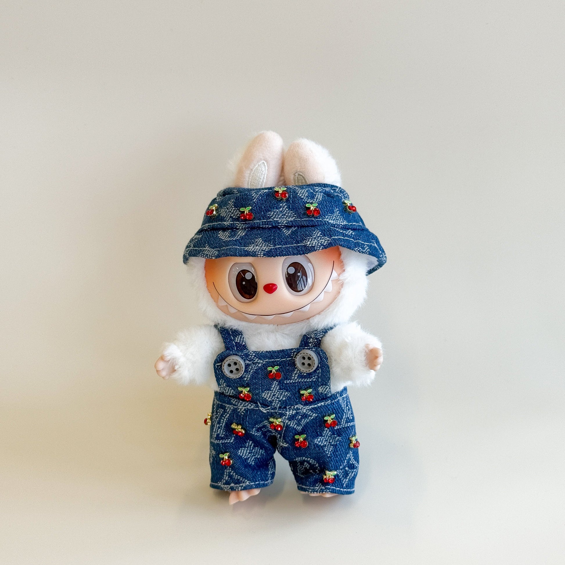 Note: This listing is for the complete cherry denim set only. Labubu character is not included. This is a handmade product, please allow additional time for production and shipping.