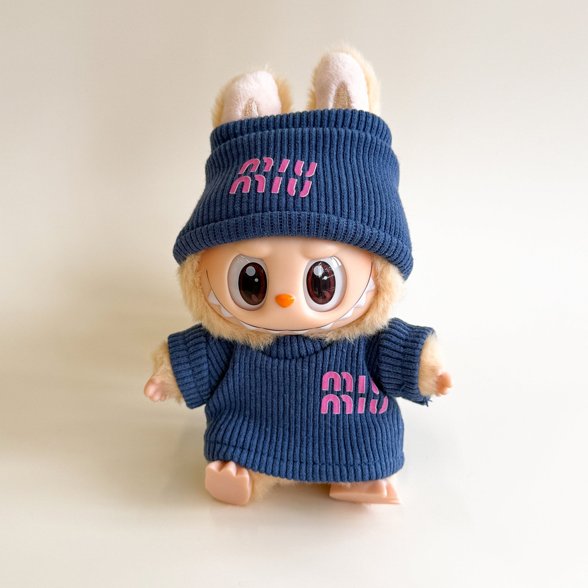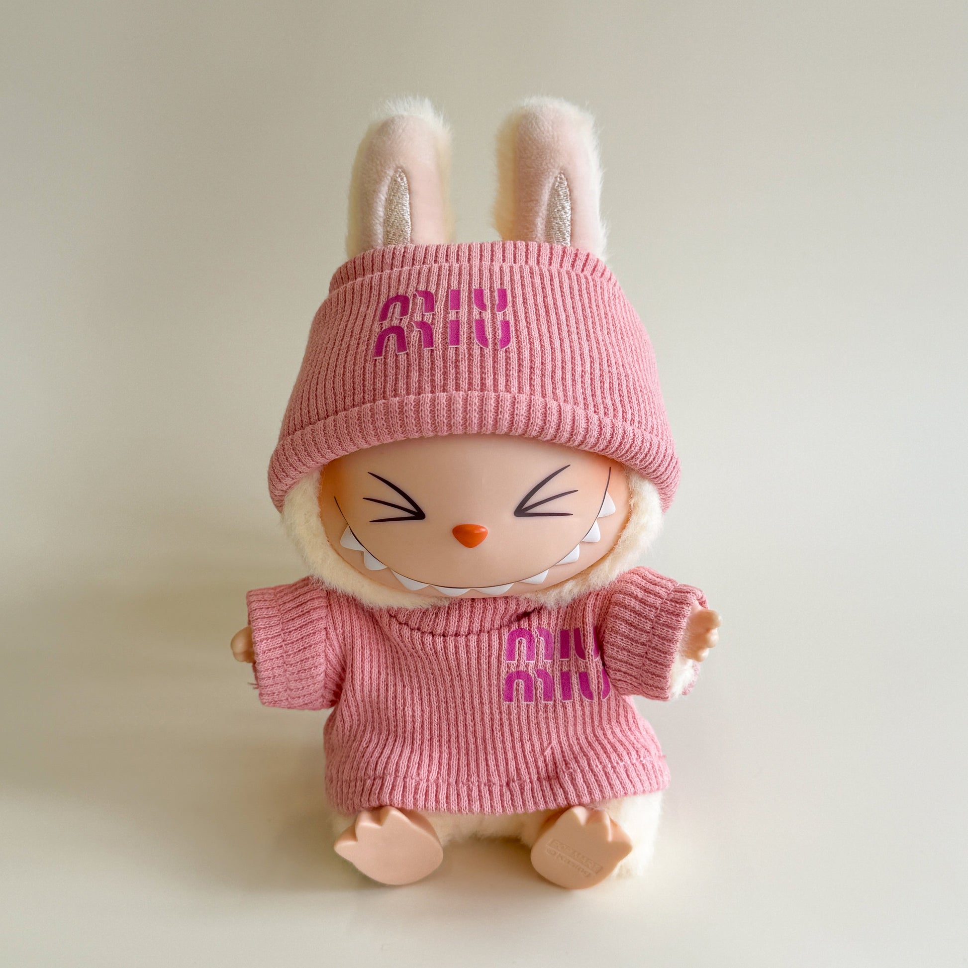 Dress your Labubu in Italian-inspired luxury with this ribbed knit set featuring the iconic MM logo.